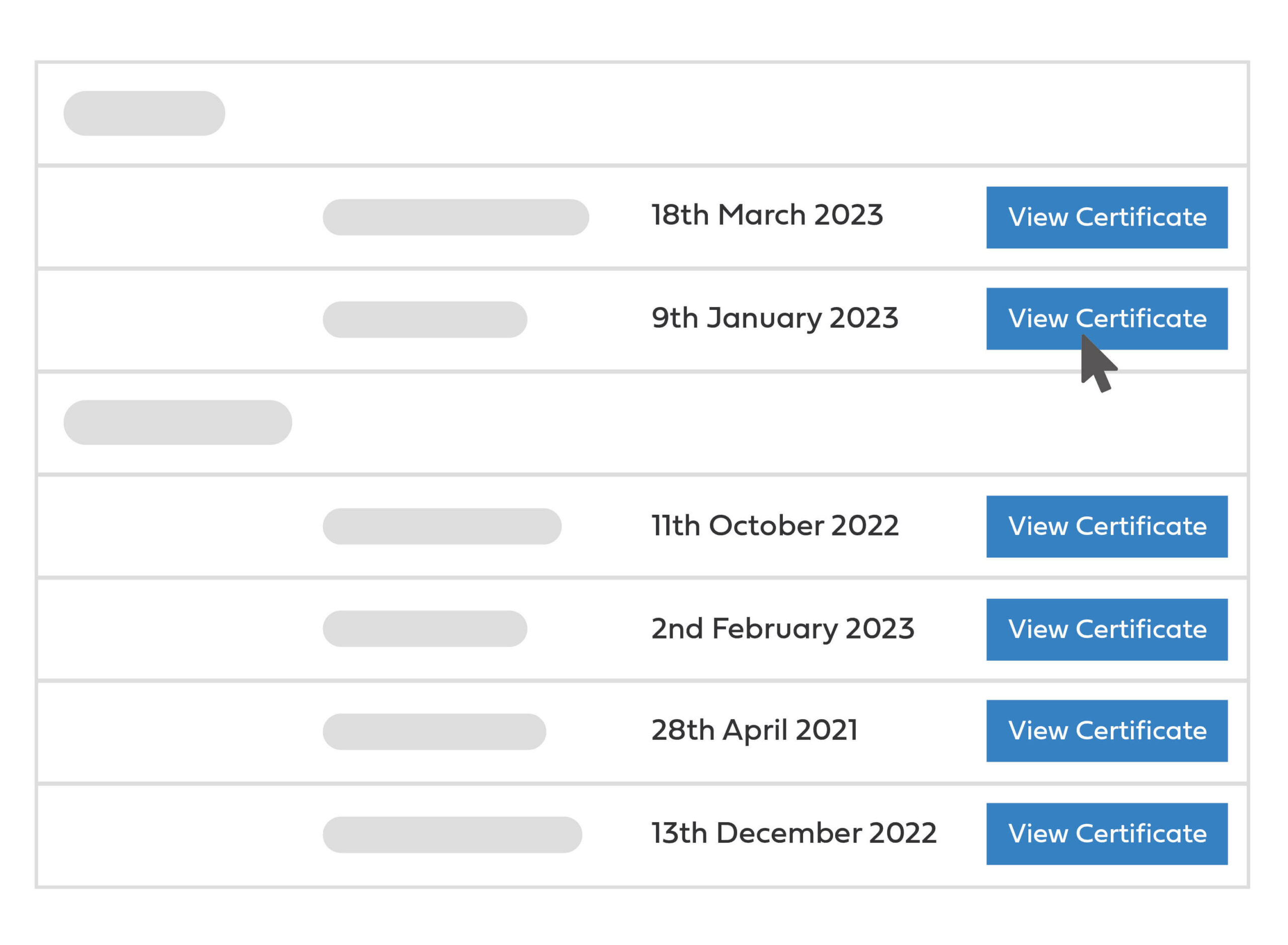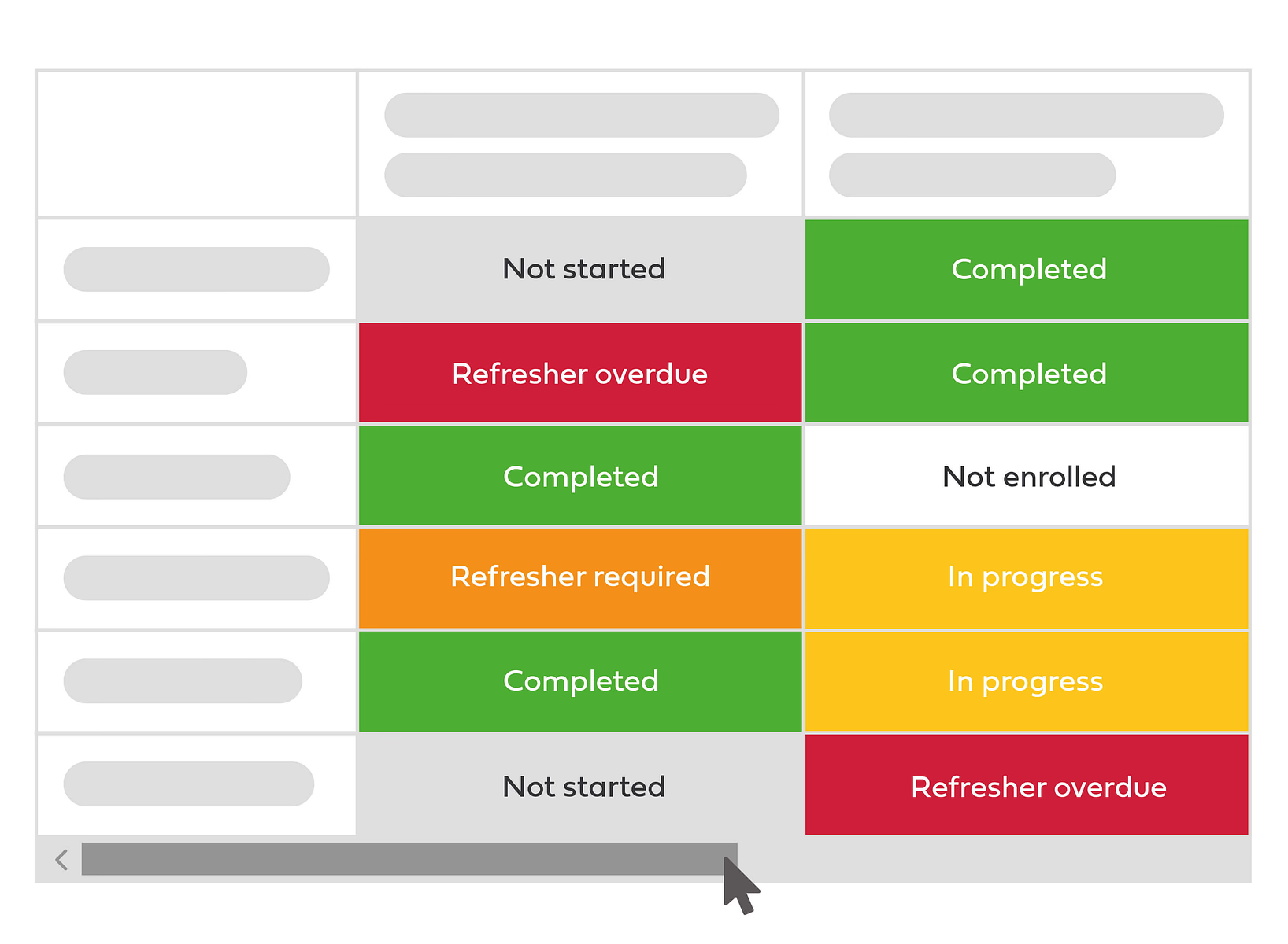 View completed courses and pass dates for each employee to ensure training is valid and teams stay compliant.